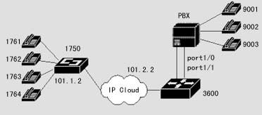 1720也可以通過器語音端口連接到PSTN,通過二次撥號(hào),使得兩地的PSTN用戶可以通過IP網(wǎng)絡(luò)互相通話,而話費(fèi)只是市話的費(fèi)用。