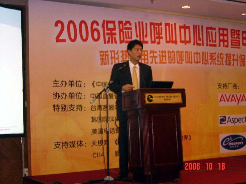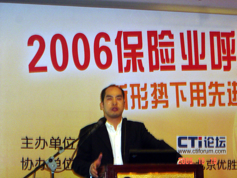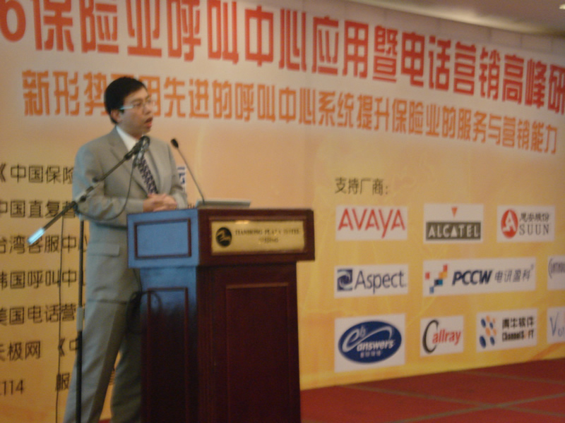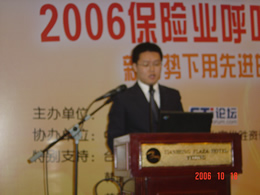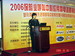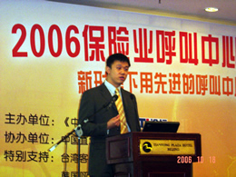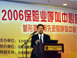 2006年10月18日,2006保險業(yè)呼叫中心應用暨電話營銷高峰研討會在北京天鴻科園大酒店隆重召開,以下是大會主題演講的相關圖片報道: