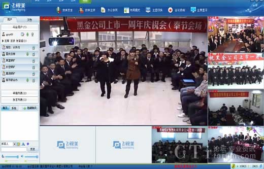 首先,飛視美為總部及5個辦事處分別安裝了飛視美視頻會議軟件,將慶典場地劃分為1個主會場和5個分會場,總部與分支機(jī)構(gòu)的員工都在當(dāng)?shù)貐⒓討c典,通過飛視美進(jìn)行在線演講與總結(jié)、相互問候、相互祝福、表演節(jié)目、進(jìn)行互動游戲等,這是一種“高科技互動”。其次,為了達(dá)到更好的視頻溝通效果,飛視美為黑金實業(yè)量身定制了一套硬件設(shè)備方案。根據(jù)各會場的面積、參與人數(shù)等情況,提供了一整套硬件參考:包括攝像設(shè)備、音響設(shè)備、功效設(shè)備等,并派出技術(shù)團(tuán)隊專門赴重慶為客戶進(jìn)行設(shè)備搭建和調(diào)試,保障了此次慶典的最佳效果。