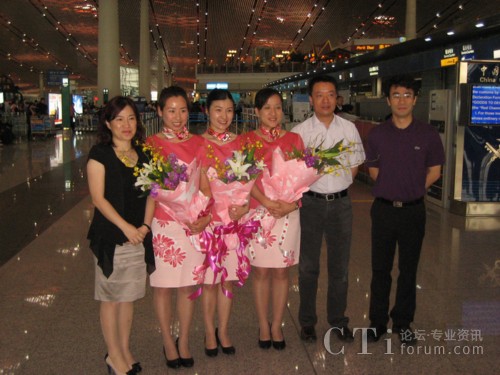 信息導航業(yè)務中心總經理楊勇、副總經理魏婕等領導前往機場送行,中心副總經理郝孟堯帶隊前往韓國。中心領導向三位114話務員送上了獻花與祝福,希望她們珍惜此次走出國門為世博會服務的難得機會,展現(xiàn)114的風采,將北京聯(lián)通114最動聽的聲音、最美麗的微笑、最優(yōu)質的服務向世界呈現(xiàn)。三位114話務員表示,將用純正、專業(yè)的中文綜合信息咨詢服務,讓世界感受到聯(lián)通114的熱情與微笑。