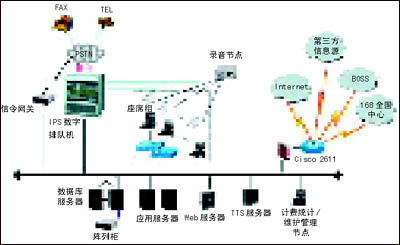 本項(xiàng)目采用新太科技交互式電話會議系統(tǒng)2.0版,系統(tǒng)各組成部分見圖1。前端接入設(shè)備采用SUNTEK-IPS數(shù)字排隊(duì)機(jī),負(fù)責(zé)多方電話會議用戶和其他業(yè)務(wù)用戶接入的交換排隊(duì)、自動語音資源提供、座席服務(wù)資源提供、錄音、計(jì)費(fèi)等等。SUNTEK-IPS數(shù)字排隊(duì)機(jī)是新太科技最新一代軟交換平臺,是整個系統(tǒng)平臺的核心。它綜合了新太科技?xì)v代平臺的優(yōu)勢,采用世界上最先進(jìn)的軟交換(包交換)技術(shù)和CompactPCI技術(shù),支持主控CPU卡冗余和熱拔插,擁有更大規(guī)模的交換系統(tǒng)總線(CompactPCI的CTBus總線共有4096個時隙,理論上,單個機(jī)框可以支持4k×4k的交換)。SUNTEK-IPS數(shù)字排隊(duì)機(jī)基于自主開發(fā),擁有自主產(chǎn)權(quán),保證了極高的性價比,已經(jīng)通過了信息產(chǎn)業(yè)部入網(wǎng)認(rèn)證。SUNTEK-IPS數(shù)字排隊(duì)機(jī)現(xiàn)已在十多個省成功開展全省業(yè)務(wù)的事實(shí),證明了它具備技術(shù)先進(jìn)、可靠性強(qiáng)等特點(diǎn)。
