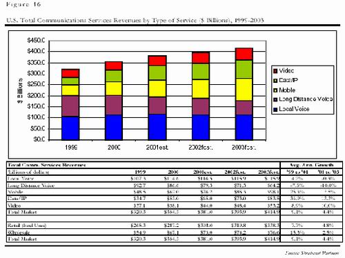 電信市場不是一個孤立的市場,而是由電信服務和電信制造兩個緊密相連的市場組成的。電信制造業(yè)不斷進行研發(fā)創(chuàng)新,為電信服務業(yè)提供新的業(yè)務;而電信服務也利用電信制造業(yè)的新技術,并把這些服務最終提供給商業(yè)和普通消費者兩類用戶?梢哉f,電信制造業(yè)的發(fā)展在很大程度上是由電信服務業(yè)決定的。要了解電信制造市場的將來,不得不從電信服務市場的變化談起!