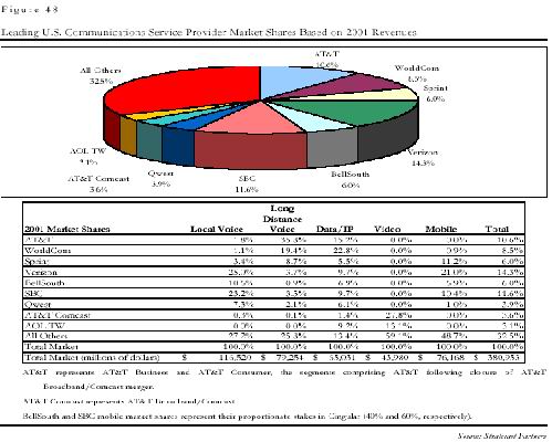 。∑髽I(yè)戰(zhàn)略:在商業(yè)用戶方面,AT&T一邊加緊完善自己的全球接入網(wǎng)絡(luò),如在上海設(shè)立分公司;一邊積極提高自己向商業(yè)用戶提供全面解決方案的能力,AT&T公司新成立的AT&T解決方案部門(mén)可以被稱做電信領(lǐng)域的IBM全球服務(wù)公司,在很短的時(shí)間內(nèi),AT&T解決方案部門(mén)已經(jīng)發(fā)展到7500人,年?duì)I業(yè)額超過(guò)50億美元,同時(shí)能為商業(yè)用戶在全球范圍提供全面的電信解決方案。