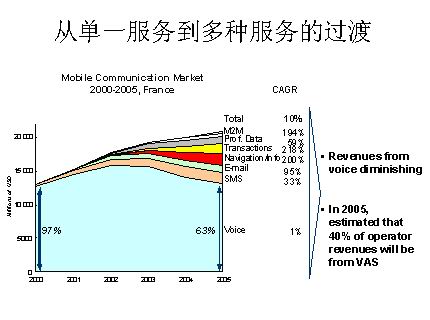 每一個(gè)細(xì)分市場(chǎng)從傳統(tǒng)的基礎(chǔ)服務(wù)逐漸向用戶的應(yīng)用需求靠攏,并以打包的方式向用戶提供解決方案服務(wù),造成增值電信業(yè)務(wù)的價(jià)值鏈越來(lái)越復(fù)雜。同時(shí),用戶的需求主要體現(xiàn)在方便性和娛樂(lè)上,以移動(dòng)增值業(yè)務(wù)為例,歐美的增值業(yè)務(wù)主要是被滿足用戶的方便性、實(shí)現(xiàn)實(shí)時(shí)通訊需求的即時(shí)短信等為主導(dǎo),而亞洲國(guó)家則普遍在以?shī)蕵?lè)功能為主的SMS和移動(dòng)游戲業(yè)務(wù)上潛力巨大。我們應(yīng)該看到,不管以哪種業(yè)務(wù)為主導(dǎo),市場(chǎng)的彈性都普遍增加,市場(chǎng)前景的不確定性增大。其中最顯著的特點(diǎn)為,市場(chǎng)需求不再是恒定的,市場(chǎng)的大小在很大程度上是由運(yùn)營(yíng)商的經(jīng)營(yíng)決定的,與運(yùn)營(yíng)商的業(yè)務(wù)提供方式和促銷(xiāo)的效率密切相關(guān)。這無(wú)疑對(duì)運(yùn)營(yíng)商在新業(yè)務(wù)的市場(chǎng)預(yù)測(cè)、業(yè)務(wù)模式選擇和用戶需求的喚起上提出了更高的要求。
