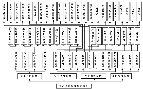根據(jù)分析,將醫(yī)藥行業(yè)的客戶關(guān)系管理功能分為四個(gè)主要模塊: