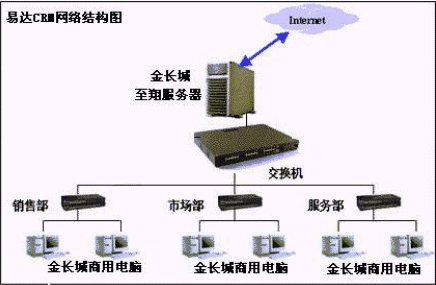 易達(dá)CRM應(yīng)用于小型網(wǎng)絡(luò)環(huán)境(或單機(jī)應(yīng)用),對(duì)于中小型企業(yè)只需建立PC級(jí)局域網(wǎng)絡(luò)環(huán)境即可,同時(shí)可以通過(guò)服務(wù)器聯(lián)入INTERNET,便于異地業(yè)務(wù)人員的數(shù)據(jù)錄入和EMAIL數(shù)據(jù)傳送。(在此易達(dá)CRM與相關(guān)品牌的PC服務(wù)器、PC商用機(jī)建立戰(zhàn)略合作關(guān)系,以較優(yōu)惠的價(jià)格向中小型企業(yè)提供性價(jià)比很高的全面解決方案包,這是對(duì)中小型企業(yè)用戶、硬件廠商、易達(dá)軟件三方均有益的解決方案)。
