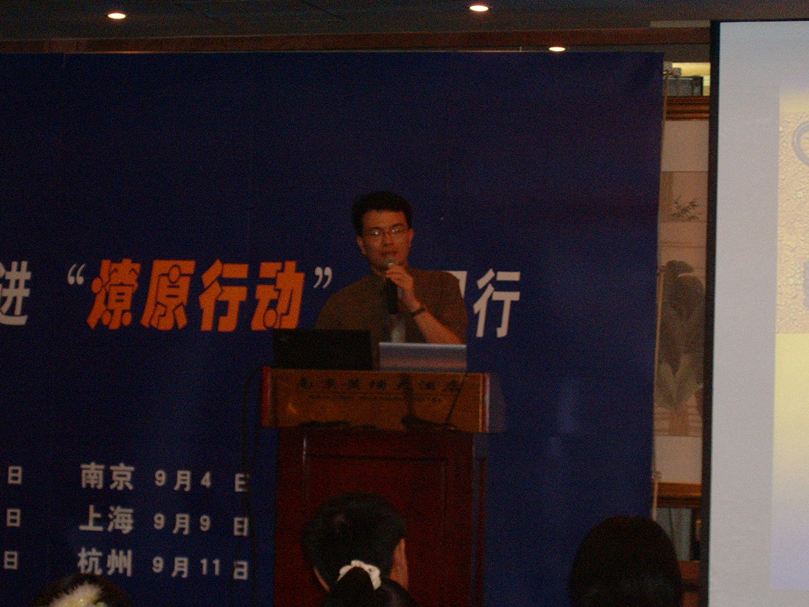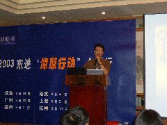 東進(jìn)營(yíng)銷(xiāo)中心市場(chǎng)部經(jīng)理張素貞女士介紹南京站“燎原行動(dòng)”議程