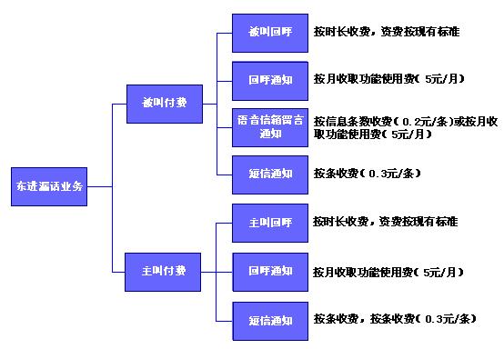東進(jìn)固話(huà)漏話(huà)業(yè)務(wù)可根據(jù)業(yè)務(wù)的漏話(huà)提醒方式不同分別計(jì)費(fèi)或組合計(jì)費(fèi)。