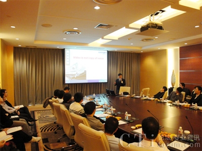 東進(jìn)Keygoe產(chǎn)品經(jīng)理劉駿先生是本次活動(dòng)當(dāng)之無(wú)愧的頂梁柱,活躍在沙龍活動(dòng)的每一站。他對(duì)3G通信市場(chǎng)進(jìn)行了深入淺出的分析,借鑒國(guó)外成功的案例經(jīng)驗(yàn),并對(duì)中國(guó)可能的熱點(diǎn)業(yè)務(wù)做出東進(jìn)的預(yù)測(cè),即在將來(lái),手機(jī)上網(wǎng),視頻點(diǎn)播,定位服務(wù)以及下載服務(wù)可能成為熱點(diǎn),同時(shí),重點(diǎn)列舉和分析了東進(jìn)在3G業(yè)務(wù)應(yīng)用的探索成果和經(jīng)驗(yàn)。會(huì)中對(duì)將視頻功能嵌入到“3G總機(jī)一號(hào)通”這類應(yīng)用的描述,非常引人入勝,尤其讓人注意的是,他認(rèn)為3G視頻在將來(lái)不會(huì)作為一個(gè)單獨(dú)的業(yè)務(wù)而存在,而公眾業(yè)務(wù)并沒(méi)有如預(yù)期般成為主流。此外,以國(guó)慶60周年閱兵空中梯隊(duì)現(xiàn)場(chǎng)指揮調(diào)度系統(tǒng)應(yīng)用為例,對(duì)行業(yè)呼叫中心的成功案例分享以及重點(diǎn)行業(yè)的前景預(yù)測(cè)分析也給客戶留下很深刻的印象。劉駿表示,對(duì)于正進(jìn)入新格局的市場(chǎng),多媒體交換機(jī)正愈加凸顯其多媒體處理性能,并加速與其他通信系統(tǒng)的融合,而理解客戶的需求,成為重中之重。