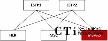 MSVAS平臺(tái)可以通過(guò)七號(hào)信令網(wǎng)與移動(dòng)核心網(wǎng)中的各個(gè)網(wǎng)元進(jìn)行對(duì)接,如與七號(hào)信令網(wǎng)中的LSTP進(jìn)行對(duì)接,通過(guò)ISUP、TUP以及MAP對(duì)核心網(wǎng)中HLR、MSC、短信中心等網(wǎng)元進(jìn)行訪問(wèn),實(shí)現(xiàn)移動(dòng)管理(位置查詢)、呼叫處理(主要是獲取路由信息)、業(yè)務(wù)登記、短消息業(yè)務(wù)等功能,其連接方式如下圖所示: