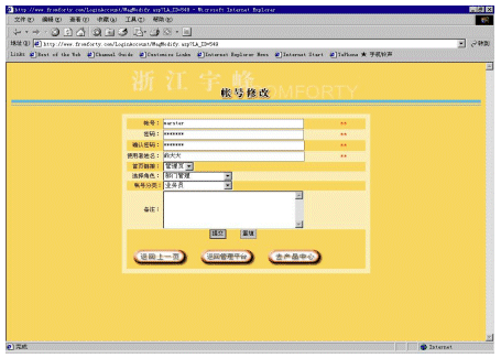 帳號系統(tǒng)主要是為適應一個分銷商內(nèi)部會有多個不同等級的人使用這個系統(tǒng)。對于分銷商而言,它可以建立多個帳號,并為每個帳號分配不同的權限,以及每個帳號可以對應管理不同下屬企業(yè)(參看圖5和圖6)。還可以為不同的帳號提供不同的進入頁面,使得用戶使用更加方便。