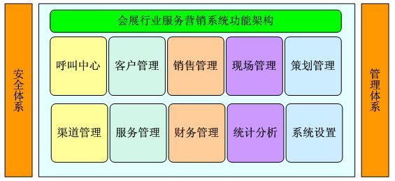 會展行業(yè)服務(wù)營銷系統(tǒng)為會展服務(wù)、會展組辦企業(yè)的信息管理的需要而開發(fā),結(jié)合呼叫中心及服務(wù)營銷系統(tǒng),全面涉及和管理會展服務(wù)企業(yè)的日常業(yè)務(wù),可以有效的實現(xiàn)會展集團多辦事處共同應(yīng)用,有效管理不同的展會,分類管理展商觀眾等方面的數(shù)據(jù),全面管理客戶關(guān)系,防止客戶數(shù)據(jù)因業(yè)務(wù)人員流動而流失,并可以直觀地進行展會過程管理,應(yīng)用精確的統(tǒng)計數(shù)據(jù)輔助公司決策。