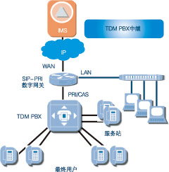 TDMPBX交換機多采用PRI或中國No.1信令(CAS)。TDM小交換機通過E1網(wǎng)關(guān)接入IMS系統(tǒng),使小交換機之后的電話終端用戶可以享受IMS典型業(yè)務(wù)。經(jīng)愛立信系統(tǒng)測試認證的E1網(wǎng)關(guān)有Mediatrix和Audiocodes等多家廠商的產(chǎn)品。