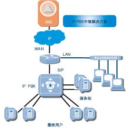 適用于支持模擬線的小交換機,經(jīng)SIPIAD設(shè)備將模擬線路轉(zhuǎn)換為基于IP的SIP信令流和媒體流,接入IMS系統(tǒng)。經(jīng)愛立信測試認證過的IAD產(chǎn)品有Mediatrix、Audiocodes、Linksys等。