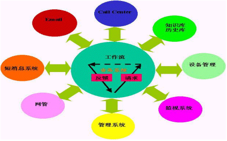 工行北方數(shù)據(jù)中心HelpDesk系統(tǒng)與工行北方數(shù)據(jù)中心的設備管理系統(tǒng)、網(wǎng)管系統(tǒng)和監(jiān)視系統(tǒng)整合,使HelpDesk系統(tǒng)能夠為技術(shù)支持人員提供更多的信息。通過與網(wǎng)管集成,可以利用HelpDesk系統(tǒng)發(fā)布網(wǎng)管采集的異常信息,同時這些信息可以為技術(shù)支持人員的工作提供參考。設備管理信息不但可以供技術(shù)支持人員參考,還可以使當前的工作與設備相關(guān)。這樣便于監(jiān)督、審查,同時也使設備維護的歷史信息可以供日后參考。監(jiān)視系統(tǒng)提供報警和大屏幕顯示。大屏幕顯示系統(tǒng)可以把取自系統(tǒng)內(nèi)的關(guān)鍵數(shù)據(jù)顯示到幕墻上。