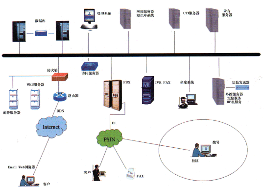 電話業(yè)務(wù)處理是社區(qū)呼叫中心中涉及面最廣,同時(shí)也是發(fā)展?jié)摿薮蟮囊徊糠謽I(yè)務(wù),電話服務(wù)可以提供人工服務(wù)、自動(dòng)服務(wù)和留言服務(wù)。通過(guò)電話接入方式,可以實(shí)現(xiàn)客戶呼叫中心的各項(xiàng)業(yè)務(wù)。