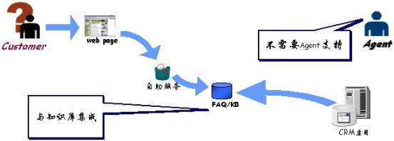 自助服務(wù):實(shí)際上,客戶咨詢的很多問題都屬于FAQ。對(duì)于這類問題,Quintus WebCenter提供“自助服務(wù)”,用戶無(wú)須客服代表的幫助,即可快速獲得答案,這一方面可減少企業(yè)客服代表的數(shù)量,另一方面提高了用戶咨詢的響應(yīng)速度。此外,CRM的管理人員可通過FAQ管理加入新的FAQ,或去掉過時(shí)的FAQ。