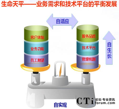“生命天平”所體現(xiàn)的聯(lián)絡中心運營管理是一個動態(tài)持續(xù)的過程,客戶體驗、業(yè)務功能和員工期望是不斷變化的,這就要求平臺要具有生命力,要不斷滿足客戶和業(yè)務新的需求,能夠主動的根據(jù)客戶體驗提升服務品質,跟隨業(yè)務功能變化提升技術平臺,結合員工期望,完善和改進管理機制。使聯(lián)絡中心始終處于自生長、自適應、自實現(xiàn)的平衡調節(jié)過程中。