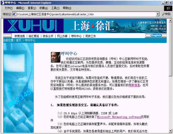 上海市徐匯區(qū)市民咨詢(呼叫)中心的第一期工程包括語音自動應答IVR、按需傳真Fax on Demand、語音郵件Voice Mail、網頁互動Web Interaction、座席屏幕彈出Agent Screen Pop、報表以及語音記錄等功能。該中心具有以下特點,很好地滿足了徐匯區(qū)政府的要求。