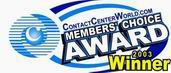 “用戶最佳選擇獎”專門頒發(fā)給呼叫中心方面的最佳公司、解決方案或軟件,獎項由所有呼叫中心的使用者投票評選而得。ContactCenterWorld.com