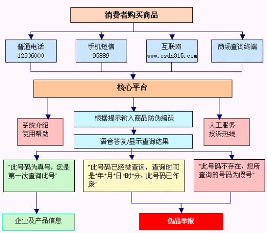 在國(guó)家計(jì)委和國(guó)務(wù)院信息辦的直接領(lǐng)導(dǎo)下,以及在質(zhì)檢、工商、醫(yī)藥等職能部門的配合下,國(guó)家信息中心正式啟動(dòng)國(guó)家級(jí)防偽工程 -- 數(shù)碼防偽公共服務(wù)系統(tǒng)建設(shè)。該系統(tǒng)綜合利用了當(dāng)前最先進(jìn)的技術(shù),集CTI技術(shù)、語音技術(shù)、網(wǎng)絡(luò)通信技術(shù)、計(jì)算機(jī)加密技術(shù)、以及大型數(shù)據(jù)庫技術(shù)于一體,服務(wù)于產(chǎn)品防偽和打假,支持企業(yè)采用現(xiàn)代信息技術(shù)開展防偽工作,提高防偽效能,并為廣大消費(fèi)者提供安全和質(zhì)量的保障。