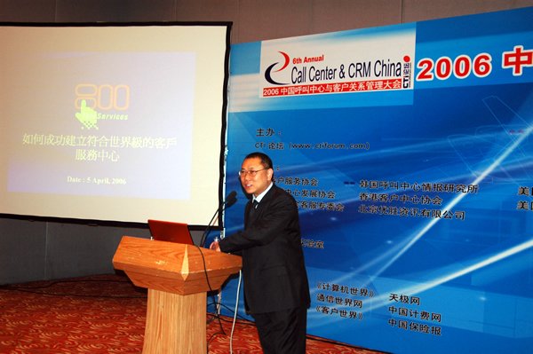 2006年4月3日至5日,2006中國呼叫中心與客戶關(guān)系管理大會在北京國際會議中心隆重召開,以下是飛翱商務(wù)咨詢有限公司主席及首席執(zhí)行官匯卓科技顧問黃有權(quán)先生專題演講實錄: 原來大會希望我用一個比較技術(shù)性的角度看作為一個很好的呼叫中心,能發(fā)揮呼叫中心應(yīng)該有的水平,參加大會的朋友不一定技術(shù)背景強(qiáng)的,有可能來自IT背景,有可能是傾向于使用者,如果我這個呼叫中心發(fā)揮功能,在技術(shù)角度影響考量的點(diǎn),作為投資和匯報的平衡點(diǎn),今天演講主要是加重這方面的經(jīng)驗分享。