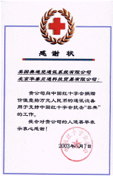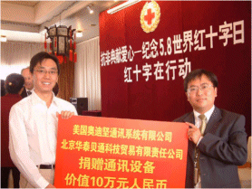 4月,SARS在北京肆無忌彈的橫行,其它國家和地區(qū)也都不同程度地受到SARS的侵害,給人民的生活和工作帶來了極大的影響,人們的身體健康和生命安全受到了威脅。中國紅十字會廣大工作人員對此次疫情迅速響應,為了支持中國中國紅十字會總開展SARS疫情的救助和捐贈工作,幫助其通過現(xiàn)代化的通訊手段快速準確的進行話務處理,以便更好地保護人民的生命和健康,4月30日,奧迪堅通訊系統(tǒng)(上海)有限公司聯(lián)合北京華泰貝通科技貿易有限責任公司向中國紅十字會總會捐贈了價值約10萬余人民幣的呼叫中心系統(tǒng),軟件以及相關服務,以實際行動幫助中國紅十字會總會抗擊SARS。