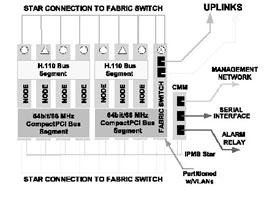 如果我們采用基于CompactPCI標(biāo)準(zhǔn)的刀片服務(wù)器系統(tǒng)來(lái)實(shí)現(xiàn),系統(tǒng)可能就是完全另外一種樣子(如圖1),這樣的實(shí)現(xiàn),首先系統(tǒng)體積小,只要一個(gè)刀片服務(wù)器機(jī)箱;第二,系統(tǒng)基于標(biāo)準(zhǔn)的體系架構(gòu),開發(fā)和維護(hù)容易,成本低廉;第三,系統(tǒng)非常好地集成了語(yǔ)音通信和IP通信,易于部署增值電信業(yè)務(wù);第四,系統(tǒng)具有較好的可擴(kuò)展性,因?yàn)楸嘲逄峁┝素S富的帶寬資源,同時(shí)單位空間內(nèi)豐富的插槽,可以安裝更多的服務(wù)器刀片,提供了充足的計(jì)算資源;第五,系統(tǒng)還可以利用各種高可靠性和高可管理性的特點(diǎn)。