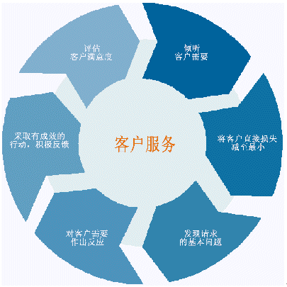 客戶服務(wù)不僅限于把公司提供給客戶使用。客戶服務(wù)是與客戶交互的一個完整過程,包括聽取客戶的問題和要求,對客戶的需要作出反應(yīng)并探詢客戶新的需求。我們真的不能將其看成一個簡單的過程?蛻舴⻊(wù)可以用一個復(fù)雜的循環(huán)來表示,其中不僅僅包括了客戶和客戶服務(wù)部門,實(shí)際上包括了整個公司,即把公司整體作為一個受客戶需求驅(qū)動的對象。
