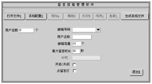 4). 主人密碼:信箱主人訪問自己信箱的口令。主人可以通過訪問自已的信箱修改密碼,若主人忘記密碼可通過管理員將其設(shè)置為缺省值0000。