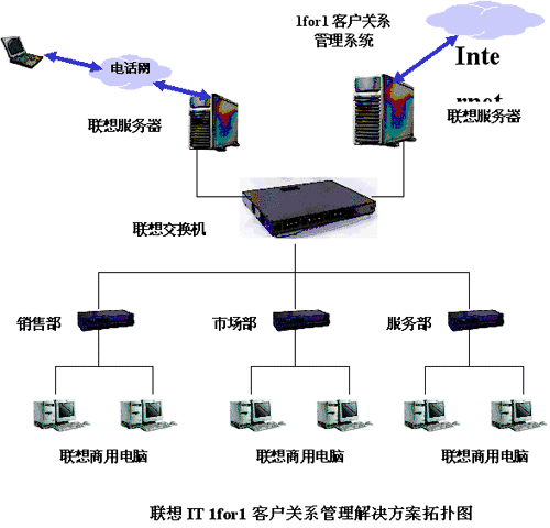 。。其實(shí)早在1998年,公司就開始了企業(yè)信息化管理的嘗試。公司建設(shè)了自己的局域網(wǎng),并開發(fā)出了專門的軟件系統(tǒng)。所有的客戶信息都要求錄入到這套系統(tǒng)中,銷售人員的工作記錄和銷售業(yè)績也要在系統(tǒng)中進(jìn)行登記。只是這套系統(tǒng)的基礎(chǔ)數(shù)據(jù)還是以Word、Excel文檔的形式分別存在,且中間的數(shù)據(jù)缺乏統(tǒng)一接口,無法動態(tài)地反映公司整體的運(yùn)營情況,很快就無法適應(yīng)公司業(yè)務(wù)發(fā)展的需要。在這種情況下,公司決定引進(jìn)規(guī)范的客戶關(guān)系管理系統(tǒng)。經(jīng)過多方比較之后,公司選擇了聯(lián)想的IT 1for1客戶關(guān)系管理解決方案。