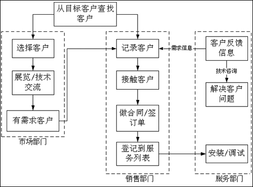 公司從很早就認(rèn)識到經(jīng)營中存在的這些問題,一直在尋找解決的方法和途徑。我們逐漸認(rèn)識到,公司經(jīng)營亟待解決的問題就是如何高效地處理客戶信息、有效地進(jìn)行客戶關(guān)系的管理,這是影響到公司能否獲得更大發(fā)展的關(guān)鍵。因?yàn)樵诠緞倓偲鸩綍r(shí),業(yè)務(wù)人員面對的是很少的客戶群,他們對每個客戶的具體情況非常熟悉,能夠根據(jù)每個客戶的不同需求特點(diǎn)提供相應(yīng)的產(chǎn)品和服務(wù)。而公司的管理人員面對的也是很少的業(yè)務(wù)人員,他們可以清楚地掌握每個業(yè)務(wù)人員的工作情況,并有針對性的加以監(jiān)督管理。公司的業(yè)務(wù)部門設(shè)置相對簡單,彼此的溝通和配合也比較容易進(jìn)行。這時(shí)候幾乎不存在客戶的管理問題。但當(dāng)公司的業(yè)務(wù)成倍增長后,業(yè)務(wù)人員和客戶的數(shù)量都空前膨脹,這時(shí)候簡單的管理手段就承擔(dān)不了如此沉重的管理任務(wù),公司的經(jīng)營就會出現(xiàn)混亂。突出的表現(xiàn)就是客戶、業(yè)務(wù)人員失控,公司的業(yè)務(wù)拓展陷入無序狀態(tài),失去繼續(xù)增長的動力。在這種情況下,要使公司的經(jīng)營走出泥潭,必須要引入的就是先進(jìn)的客戶關(guān)系管理的觀念和手段。