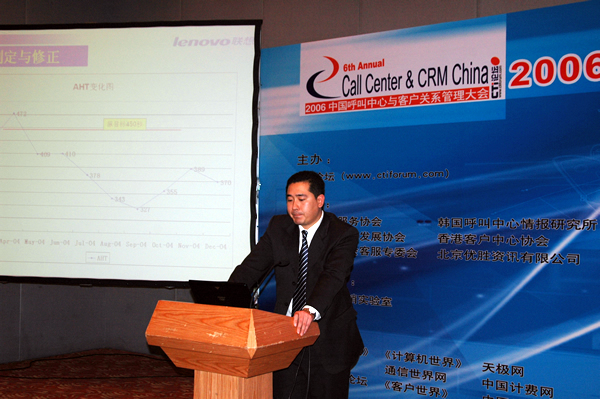 2006年4月3日至5日,2006中國呼叫中心與客戶關(guān)系管理大會在北京國際會議中心隆重召開,以下是聯(lián)想公司質(zhì)量總監(jiān)鄭浩專題演講實錄:鄭浩:大家下午好,我是聯(lián)想客戶聯(lián)絡(luò)中心的鄭浩。今天非常榮幸能夠跟各位共同探討客戶聯(lián)絡(luò)中心的運營方法。希望我對聯(lián)想的客戶聯(lián)絡(luò)中心的介紹能夠給大家一些啟發(fā)和幫助。