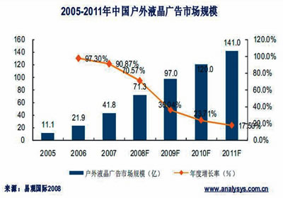 傳統(tǒng)戶外液晶廣告還存在投資過熱、收費(fèi)標(biāo)準(zhǔn)混亂、渠道資源競爭激烈、資源分割和浪費(fèi)嚴(yán)重等問題,市場需要一個(gè)強(qiáng)勢運(yùn)營商對各個(gè)細(xì)分渠道進(jìn)行整合、對市場秩序進(jìn)行規(guī)范。