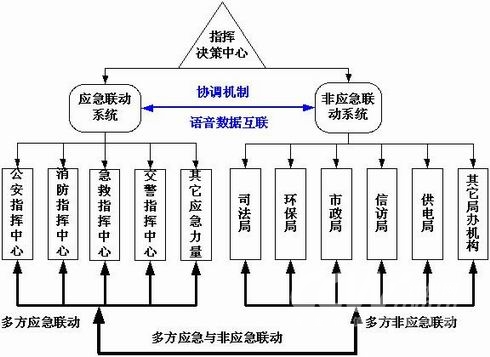 所謂“應(yīng)急與非應(yīng)急一體化聯(lián)動(dòng)”,就是在應(yīng)急聯(lián)動(dòng)和非應(yīng)急聯(lián)動(dòng)的基礎(chǔ)上,通過(guò)先進(jìn)的技術(shù)手段實(shí)現(xiàn)應(yīng)急聯(lián)動(dòng)系統(tǒng)與非應(yīng)急聯(lián)動(dòng)系統(tǒng)的高度整合,無(wú)縫聯(lián)接,并通過(guò)相應(yīng)的協(xié)調(diào)機(jī)制,實(shí)現(xiàn)各種應(yīng)急處置力量和非應(yīng)急處理部門(mén)的一體化的協(xié)同與聯(lián)動(dòng),以共同應(yīng)對(duì)和協(xié)調(diào)解決各種尤其是涉及多個(gè)方面的緊急或非緊急的事件和問(wèn)題。