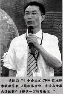 楊波說:“中小企業(yè)的CRM實施原本就很簡單,只是中小企業(yè)一直沒有找準(zhǔn)合適的軟件才使這一過程復(fù)雜化。”