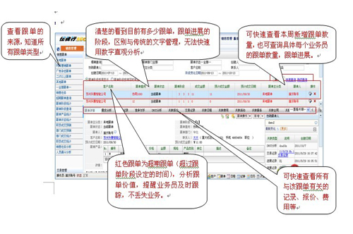 2、通過(guò)軟件對(duì)跟單的業(yè)務(wù)進(jìn)展記錄固化,清晰掌握該跟單由誰(shuí)創(chuàng)建、誰(shuí)去談單、報(bào)價(jià)有無(wú)競(jìng)爭(zhēng)對(duì)手、有無(wú)難點(diǎn)等進(jìn)展一覽無(wú)余,避免了傳統(tǒng)的電話(huà)、面對(duì)面溝通。