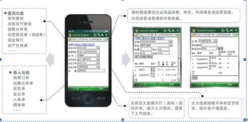 應(yīng)時代潮流和中小企業(yè)對移動商務(wù)應(yīng)用的需求,自2010年,任我行軟件公司開始研發(fā)針對中小企業(yè)的移動商務(wù)系統(tǒng),幾經(jīng)探索之后,于2011年推出了穩(wěn)定、安全、應(yīng)用流暢的管家婆手機(jī)版。通過管家婆手機(jī)版,管家婆軟件用戶可以通過終端設(shè)備(手機(jī)、PDA或數(shù)據(jù)采集器)上網(wǎng),訪問管家婆軟件后臺系統(tǒng),隨時隨地處理業(yè)務(wù),查詢各種經(jīng)營數(shù)據(jù);谟脩舨僮髁(xí)慣,管家婆移動商務(wù)分為B/S版和C/S版,其移動系統(tǒng)的應(yīng)用涵蓋了OA、查詢報表、審核、簡單錄入以及快速錄單、掃描錄入等多個方面,所有的數(shù)據(jù)自動與系統(tǒng)實時同步。移動商務(wù)幫助企業(yè)擺脫時間、空間、地點的辦公限制,讓用戶可以隨時隨地靈活處理相關(guān)工作。