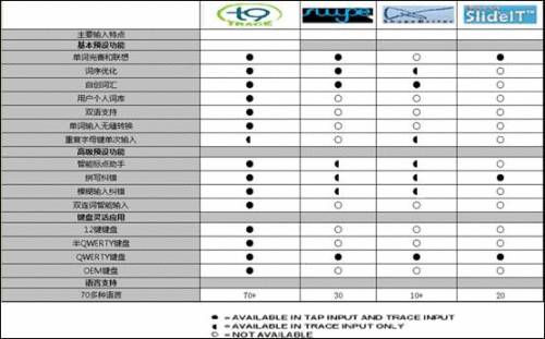 1.T9 Trace是Nuance T9產(chǎn)品組合中的一員,與T9、XT9、T9 Write等輸入技術(shù)共同為用戶(hù)打造多模式輸入體驗(yàn),使用戶(hù)擁有更多選擇,可以按照個(gè)人喜好輕松組合更快捷的輸入方法。這是市面上類(lèi)似產(chǎn)品,例如Swype,僅能依靠單一的滑行輸入所不能比擬的。