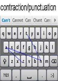 3. 在屏幕上不間斷的滑行輸入英文cant,自動(dòng)生成can’t.(自動(dòng)標(biāo)點(diǎn)生成)