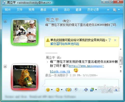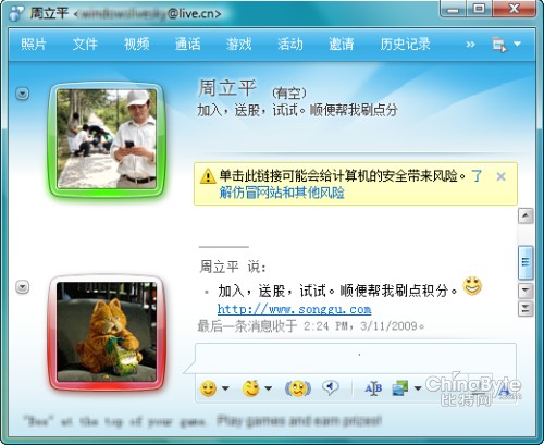 通常來說,用戶成為垃圾信息的目標主要源于用戶泄露賬戶信息。一些未經(jīng)微軟認證的第三方網(wǎng)站在會員注冊程序中為盜取用戶MSN賬號及密碼設下一個圈套,即要求注冊者提交MSN賬號和密碼。網(wǎng)站獲取到MSN用戶賬號和密碼后,通過架設的“機器人”服務器(即一種惡意程序,可通過自動勘測方式,獲取用戶賬號密碼),自動登錄該用戶Messenger,并按好友名單自動傳播垃圾信息鏈接。一旦用戶以為是好友發(fā)送的,點擊這個鏈接后,自己的電腦也會感染,會再繼續(xù)自動向其他好友發(fā)送同樣的廣告信息鏈接,就這樣,呈幾何級數(shù)進行傳播。