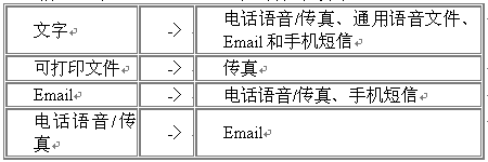 支持 Email內容到電話語音/傳真、手機短信消息轉換(例:有聲郵件)