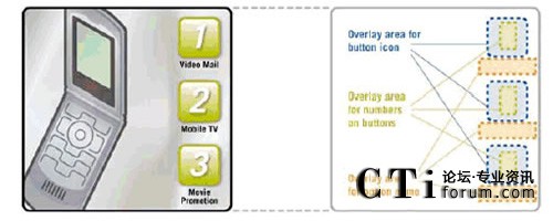 互作用提出了更進(jìn)一步的挑戰(zhàn)。能夠使用戶訪問多個(gè) TV 頻道以及獲得其他服務(wù)的視頻門戶,是一個(gè)很好的研究實(shí)例。視 頻門戶顯示了基于每個(gè)用戶活動(dòng)、訪問權(quán)限、服務(wù)描述等的服務(wù)菜單。一般來說,菜單是有限列表,用戶通過在手持終端 按下相應(yīng)的鍵來進(jìn)行選擇 (圖2.通過示意圖說明了動(dòng)態(tài)菜單的映射方法)。為了創(chuàng)建菜單,應(yīng)用程序控制了基礎(chǔ)架構(gòu),而該 基礎(chǔ)架構(gòu)動(dòng)態(tài)地生成了有限列表,并在當(dāng)前的視頻流頂端顯示為一個(gè)靜態(tài)覆蓋圖。相同技術(shù)可用于顯示基于用戶活動(dòng)或位 置進(jìn)行品牌和廣告宣傳的 logo 或文本。