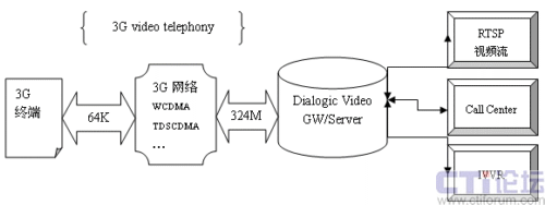 另一類業(yè)務(wù),我舉個(gè)例子,像比較近的香港CSL移動(dòng)電視,也是通過(guò)3G視頻電話打進(jìn)去在IVVR的幫助下選擇頻道,IVVR和流媒體服務(wù)器相連,就可以向3G用戶播放實(shí)時(shí)視頻內(nèi)容了。流媒體服務(wù)器是來(lái)自互聯(lián)網(wǎng)的應(yīng)用,互聯(lián)網(wǎng)上的實(shí)時(shí)轉(zhuǎn)播通過(guò)RTSP技術(shù),我們的IVVR也是利用了RTSP技術(shù)與實(shí)時(shí)內(nèi)容進(jìn)行互動(dòng)。這就是所謂的3G視頻點(diǎn)播。