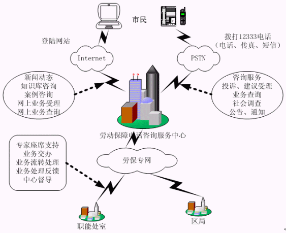 隨著國家社會保障事業(yè)的不斷發(fā)展,合肥市勞動和社會保障局為進一步加強勞動保障公共咨詢服務工作,使社會公眾能快捷方便地了解有關政策,熟悉辦事程序,更好地維護自身合法權(quán)益,構(gòu)筑一個多層次、全方位、立體型的為民服務體系。為公眾提供一個統(tǒng)一的服務窗口和平臺,于2005年9月底開始對12333電話咨詢服務系統(tǒng)及系統(tǒng)集成項目進行了社會公開招標。