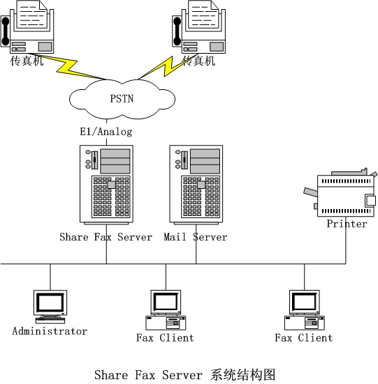 - 整個(gè)公司只需配備一個(gè)FAX Server,任何聯(lián)網(wǎng)的用戶都可通過(guò)這個(gè)設(shè)備收發(fā)傳真。