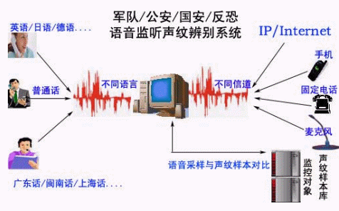 目前,犯罪分子、恐怖分子和間諜等的作案手段逐漸趨向高智能、高科技,為了逃避打擊,他們往往通過多種渠道進行通信,如手機、固定電話、公用電話等與同伙或者親友聯(lián)系,有些特殊的被監(jiān)控電話是公用電話甚至是中繼線,由于通話量大,而且大量的通話都與案件無關,涉及到被控對象的通話只是其中一小部分。這樣,公安和安全部門的執(zhí)法人員只能整天守候在偵控終端旁,花費大量的時間和精力處理大量無用的語音信息,等候嫌疑人的出現(xiàn);這樣,公安人員只能整天守候在偵控終端旁,花費大量的時間和精力處理大量無用的語音信息,等候嫌疑人的出現(xiàn);而一些在逃的嫌疑人,經常幾個月才往特定的目標處打一個電話,而且通話內容又難以判斷,導致執(zhí)法人員很難分辨出嫌疑人的聲音。如何從大量的語音信息中提取嫌疑人的聲音,并更好地消除判別語音的過程中可能出現(xiàn)的人為誤差,從而提高對偵察對象身份識別的效率和準確率,為偵查辦案提供可靠的情報,提高辦案效率,是有關部門迫切需要解決的問題。