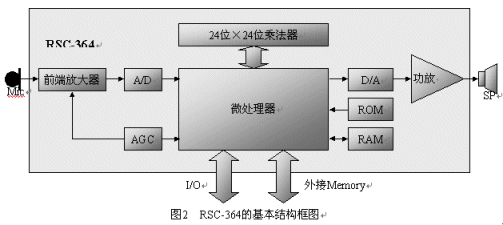 由美國Sensory Integrated Circuit公司開發(fā),2000年開始生產,是一顆為消費類電子產品應用的低價位的語音識別專用芯片,其結構圖如圖2所示。