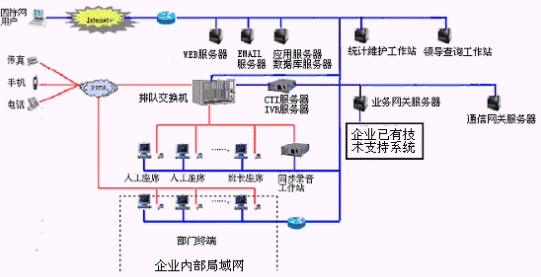 對(duì)于大中型的企業(yè)客戶服務(wù)中心系統(tǒng),可選用排隊(duì)交換機(jī)作為語(yǔ)音接入設(shè)備,保障系統(tǒng)的高可靠性和穩(wěn)定性;對(duì)于20個(gè)以下座席的中小型企業(yè)客戶服務(wù)中心系統(tǒng),則建議使用基于計(jì)算機(jī)語(yǔ)音板卡的形式,可以減少企業(yè)投資,同時(shí)具有良好的系統(tǒng)性能;以確保合理的、較少的投入,獲取最佳的配置,滿足不同企業(yè)()的需求。
