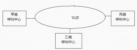 PRI,ISDN BRI,E&M或VoIP 等接口實現(xiàn),每條話路只須8Kbit/s帶寬,并支持網(wǎng)絡優(yōu)化路由及D通道座席預約,大大降低網(wǎng)絡連接費用,提高運行效率。目前主流的方式是采用VoIP技術(shù)。如下圖所示: